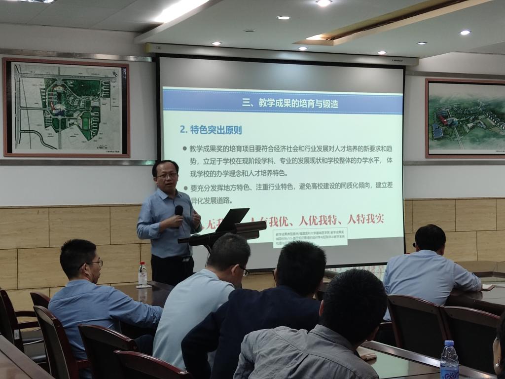 10月31日下午,福州大学张友坤副处长应邀到威尼斯官网作《精准培育 深度凝练 高效申报——新时代高等教育教学成果奖高质量产出实战攻略》专题讲座,讲座由教务处处长应少明主持,各二级学院院领导、教学成果奖项目负责人或团队成员、专任教师代表参加了本次讲座。