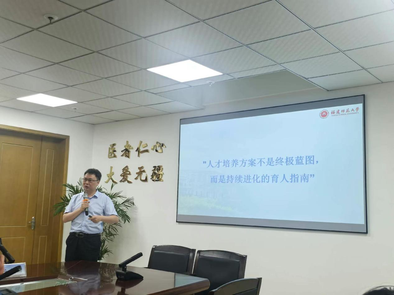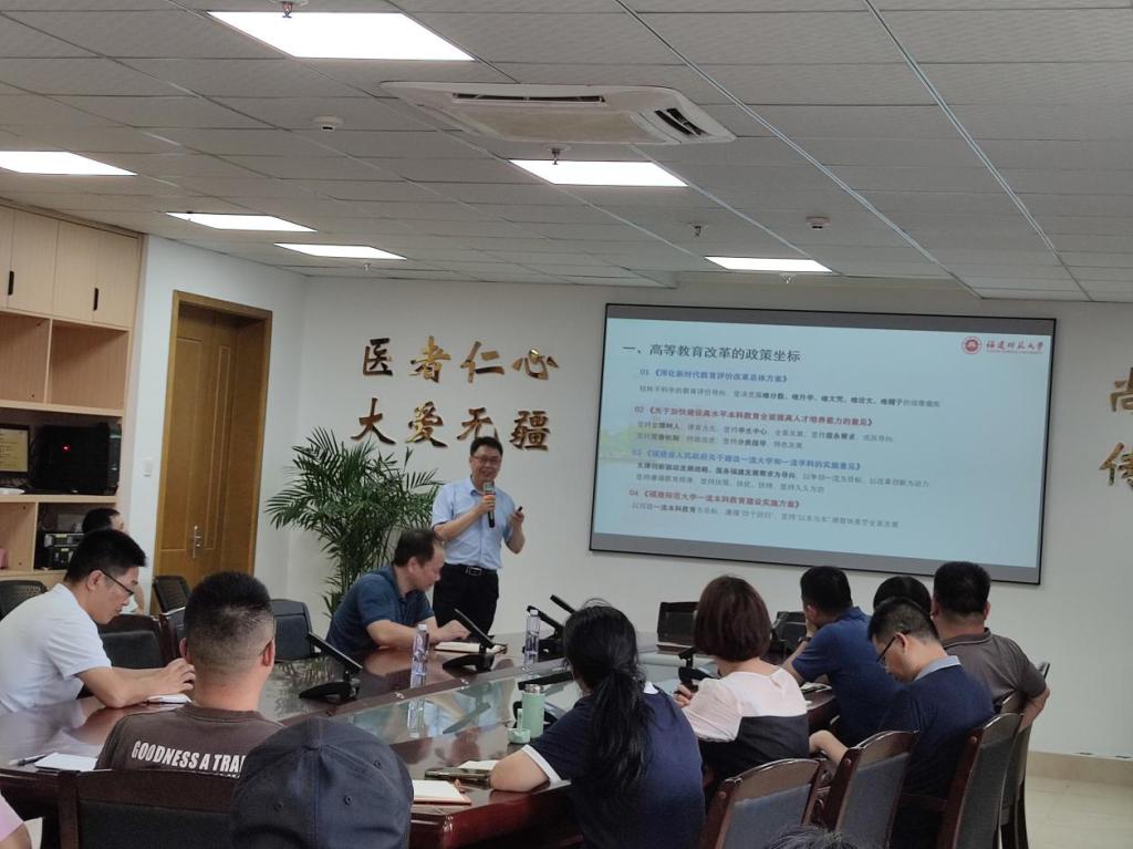 6月20日下午,福建师范大学教务处处长杨发福教授应邀到威尼斯官网作《固本培元,守正创新---福建师范大学本科人才培养方案制定的思与行》专题讲座,讲座由教务处处长应少明主持,各二级学院分管教学院领导、教科办负责人、各专业系主任参加了本次讲座。