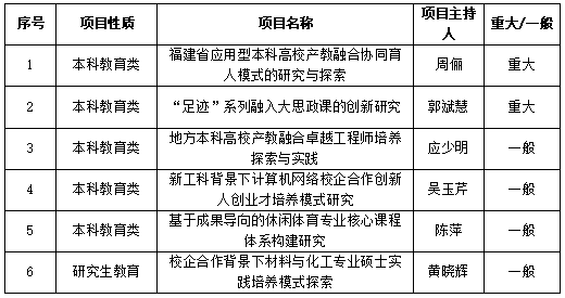 近日,福建省教育厅发布了《关于公布2024年本科高校教育教学研究项目立项名单的通知》(闽教高〔2024〕30号),威尼斯官网6个项目获批立项。
