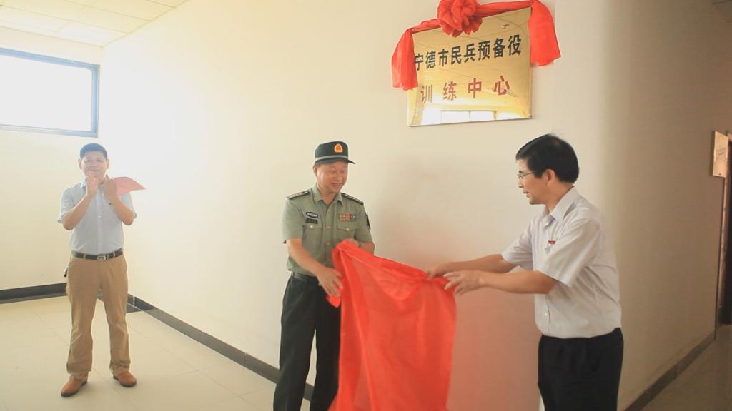 陈炎春、魏远竹共同为宁德市民兵预备役训练中心揭牌。随后,陈炎春宣布:宁德市民兵预备役训练中心正式启动!